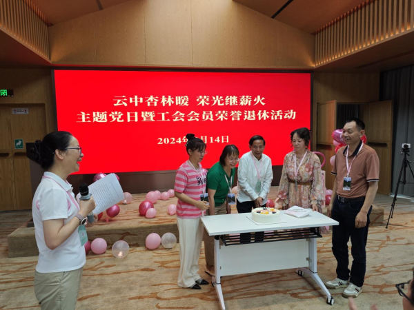 云中讯(校工会)为切实增强教师退休的政治荣誉感、组织归属感和退休仪式感,7月14日,校工会妇联党支部结合工会会员疗养活动,组织开展“云中杏林暖,荣光继薪火”主题党日活动暨2024年工会会员荣誉退休活动。校党委书记邱勇,校工会主席、党委副书记祁苑红,副校长陈祖琨,科技处、教务处负责人,全体疗养教师和部分教务处人员参加活动。活动由祁苑红主持。